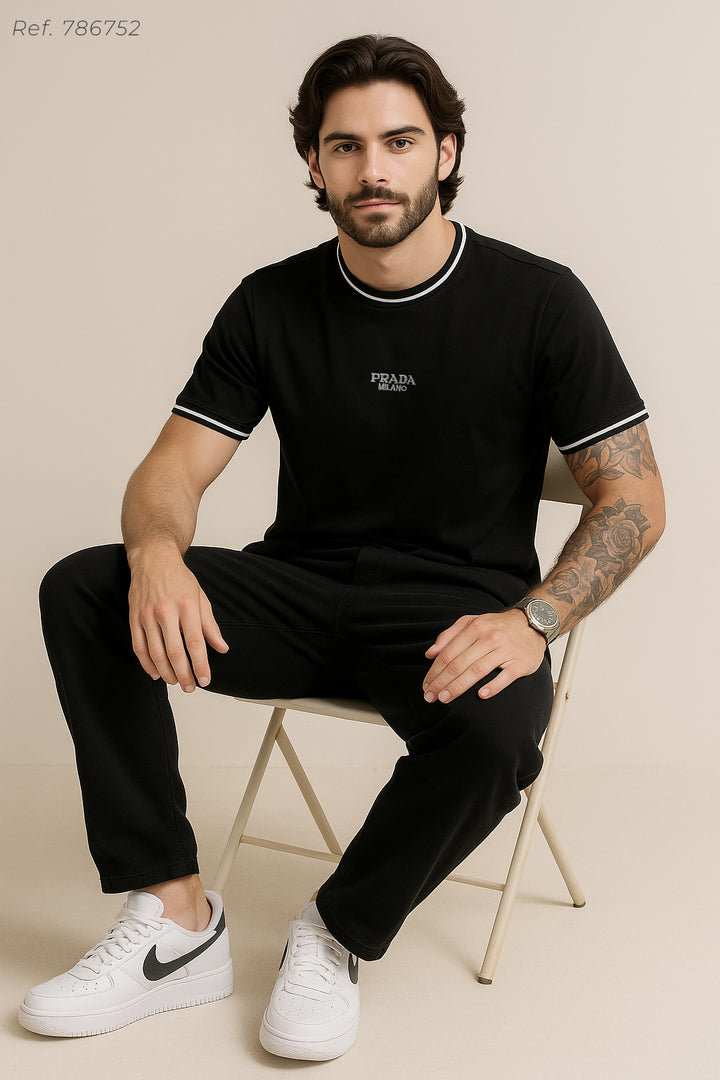 Camiseta 66029 Básica Negra Para Hombre