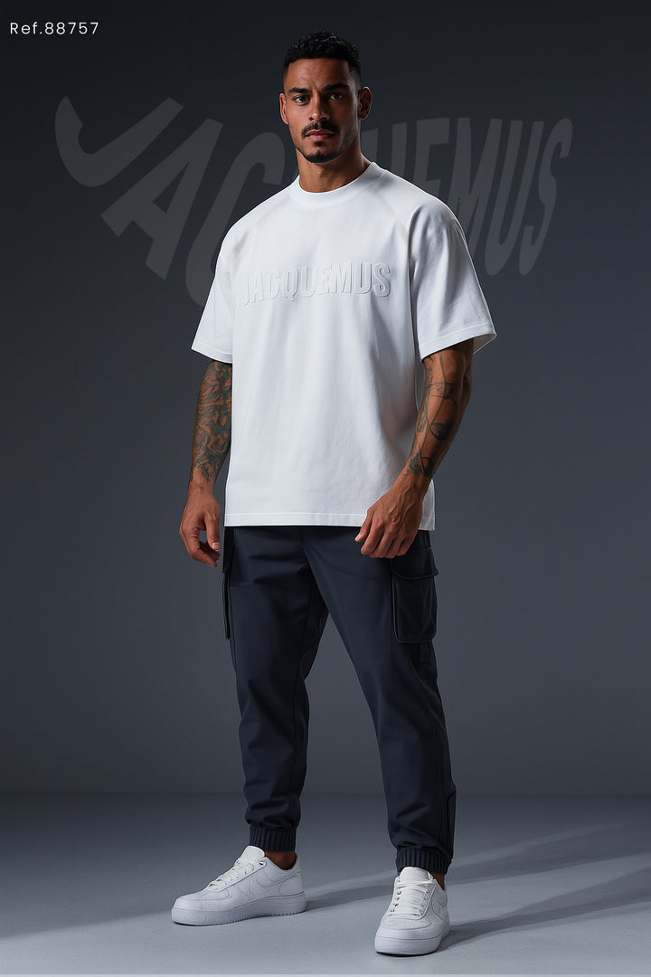 Camiseta oversize con estampado frontal y tarsero . Modelo de mangas anchas, hombros caídos y cuello redondo.