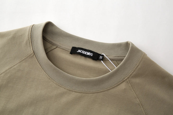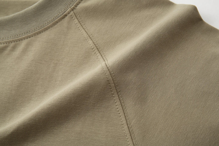 - Modelo de mangas anchas, hombros caídos y cuello redondo.
