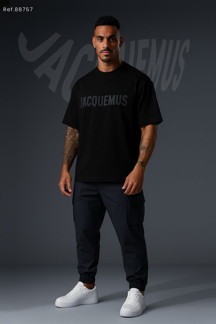 Camiseta oversize con estampado frontal y tarsero . Modelo de mangas anchas, hombros caídos y cuello redondo.