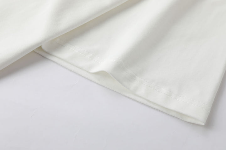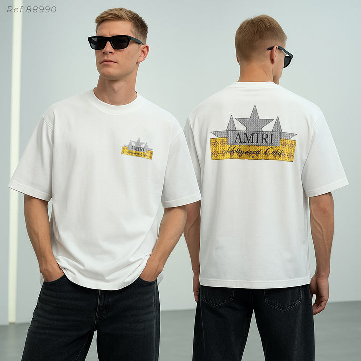 Camiseta oversize con estampado frontal y trasero. Modelo de mangas anchas, hombros caídos y cuello redondo.