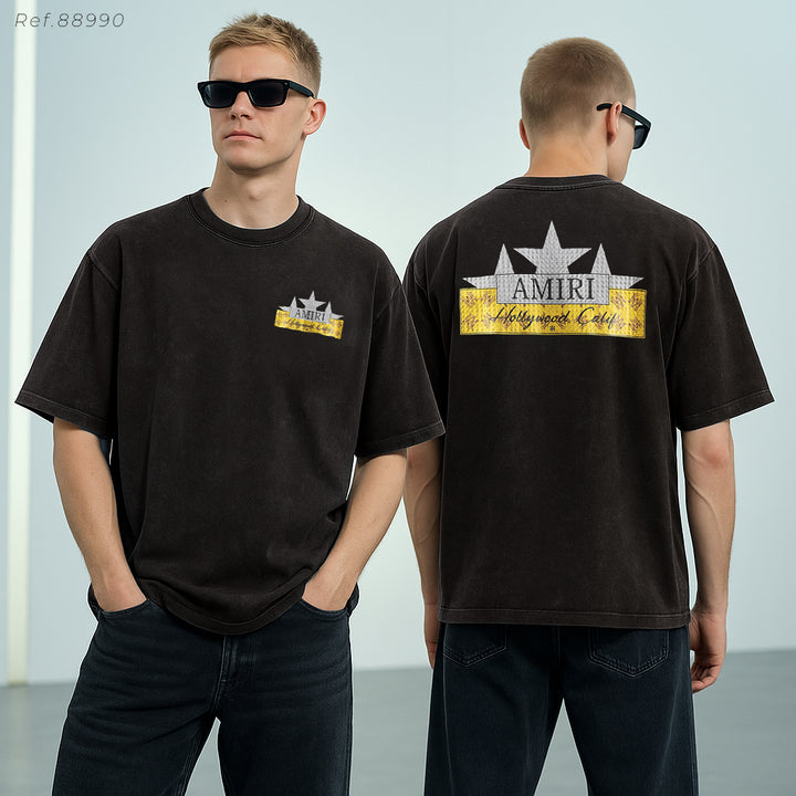 Camiseta oversize con estampado frontal y trasero. Modelo de mangas anchas, hombros caídos y cuello redondo.
