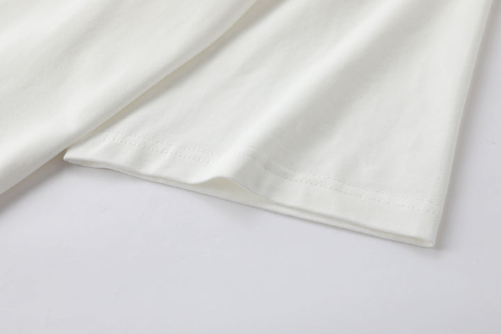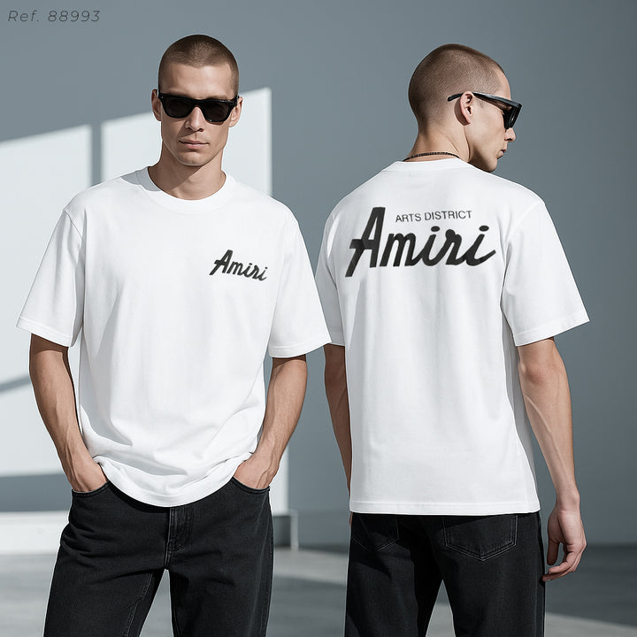 Camiseta oversize con estampado frontal y trasero. Modelo de mangas anchas, hombros caídos y cuello redondo.