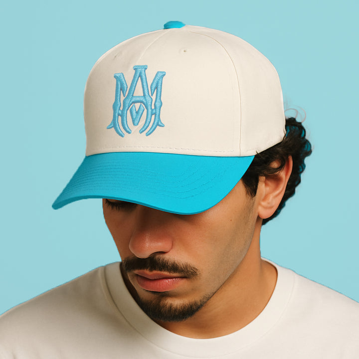 Un accesorio que combina frescura y estilo urbano. Su base beige contrasta con la visera en azul turquesa y el logo bordado en alto relieve, creando un diseño moderno y llamativo que no pasará desapercibido.