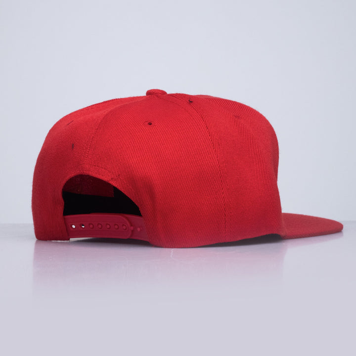 Visera plana en rojo, combinada con detalles en dorado y amarillo para un look exclusivo.