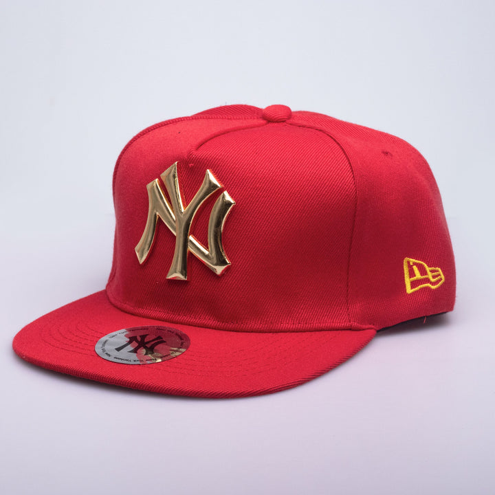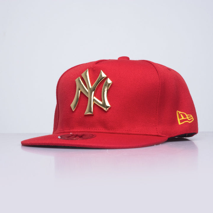 Destaca con un diseño audaz y sofisticado. Esta gorra New Era en rojo brillante con visera plana es el accesorio perfecto para quienes buscan un toque de lujo y estilo único. El logo NY Yankees en metal dorado resalta con elegancia, mientras que el logo lateral en amarillo complementa el diseño con un contraste moderno.