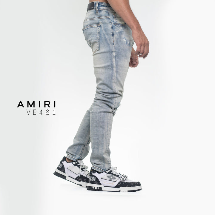 Un clásico con actitud rebelde. Este jean Amiri VE481 en denim claro combina un lavado desgastado con roturas estratégicas que le dan ese look callejero y auténtico que no pasa desapercibido. Su ajuste slim y el toque elástico del tejido aseguran comodidad sin perder forma ni estilo.